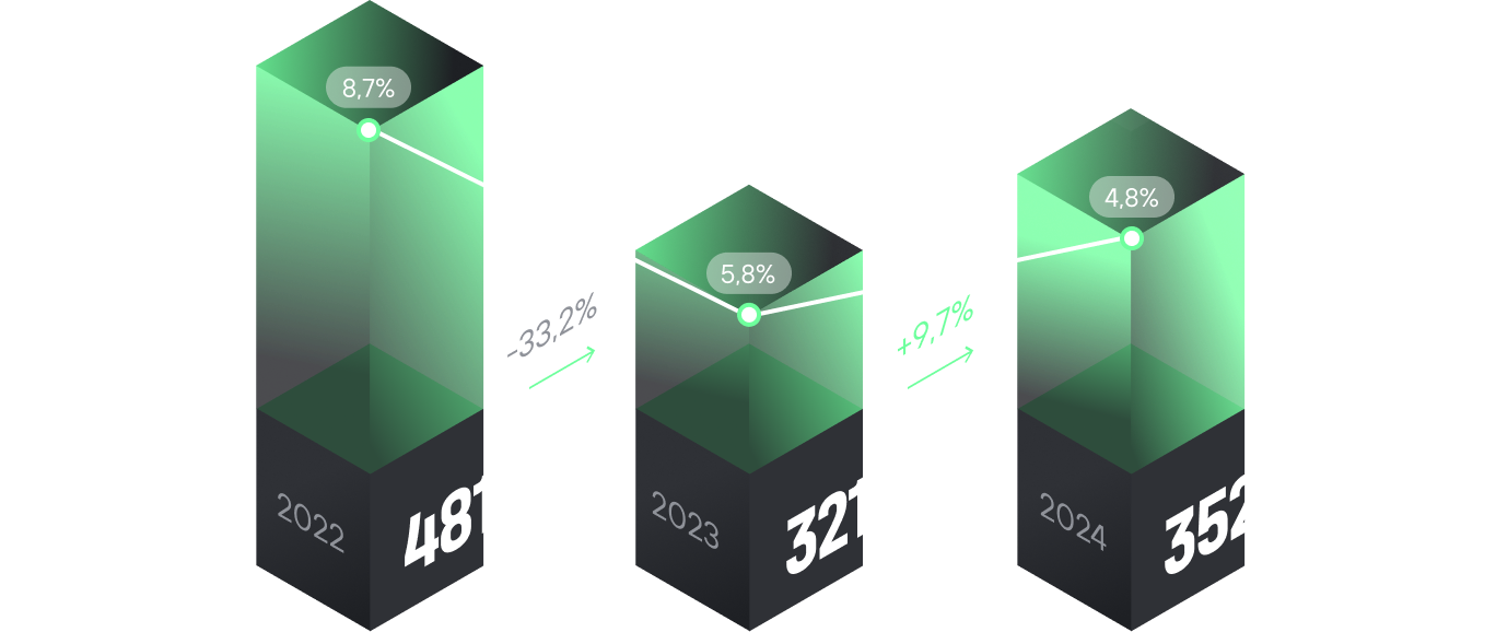 2022-2024年主要财务指标动态, 百万卢布